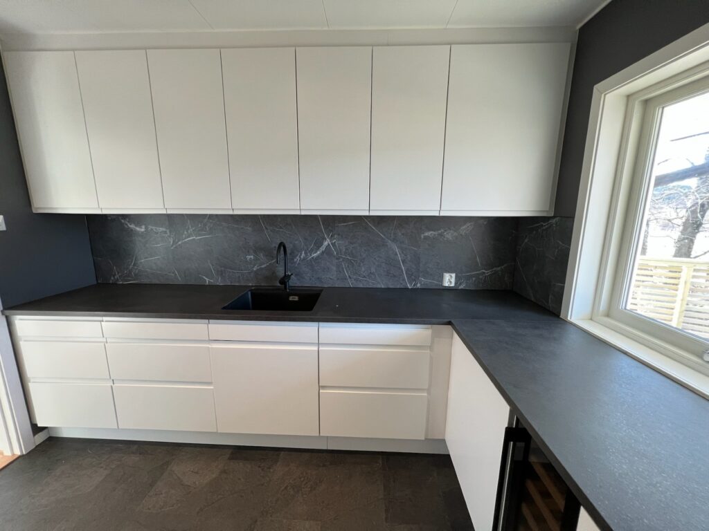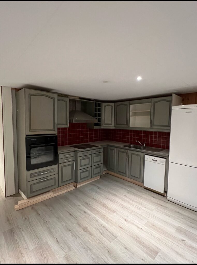 Dette er før og etter bilde, vi har rivd og bygd opp nytt kjøkken for kunde.